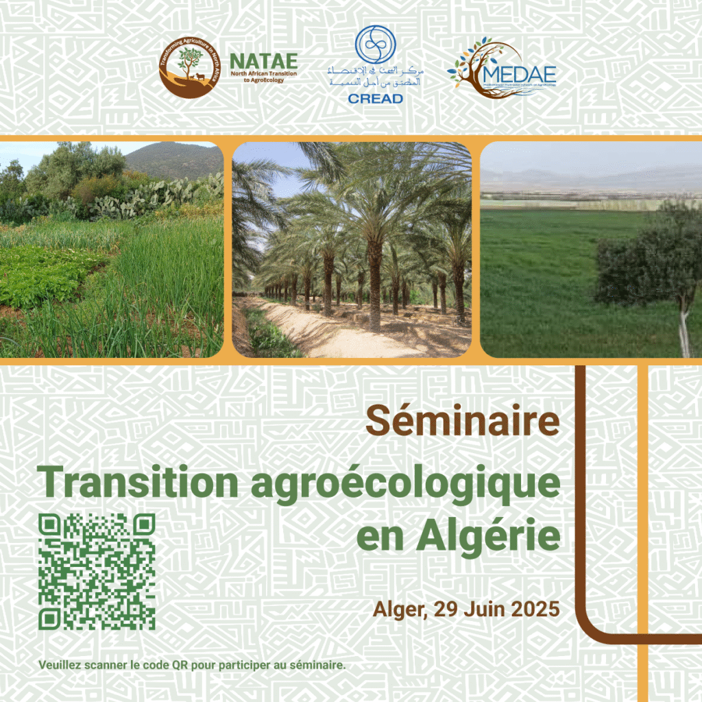 Ce séminaire est organisé dans le cadre du projet NATAE pour aborder la transition agroécologique face au changement climatique. L'objectif est de discuter des impacts du climat sur les écosystèmes, de promouvoir le réseau MEDAE et de renforcer l'engagement des parties prenantes. L'événement vise à soutenir les politiques publiques en faveur de l'agroécologie et des systèmes alimentaires durables, à mettre en lumière les initiatives locales et à mettre en commun les résultats de la recherche. Un autre objectif est d'intégrer les initiatives algériennes en faveur de la transition agroécologique dans une approche régionale afin de partager les efforts et les ressources.