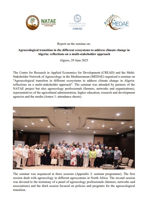 - Agroecological transition in the different ecosystems to address climate change in Algeria: reflections on a multi-stakeholder approach (29/06/2025) (Organized by CREAD, Algeria)